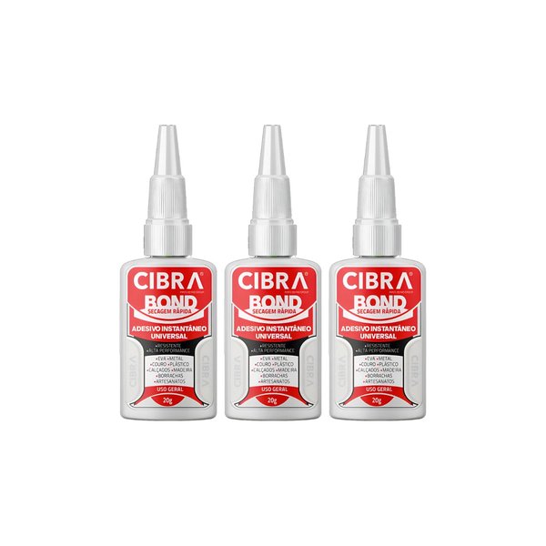 Kit 3 Super Adesivo Instantâneo Universal 20g Cibra Bond